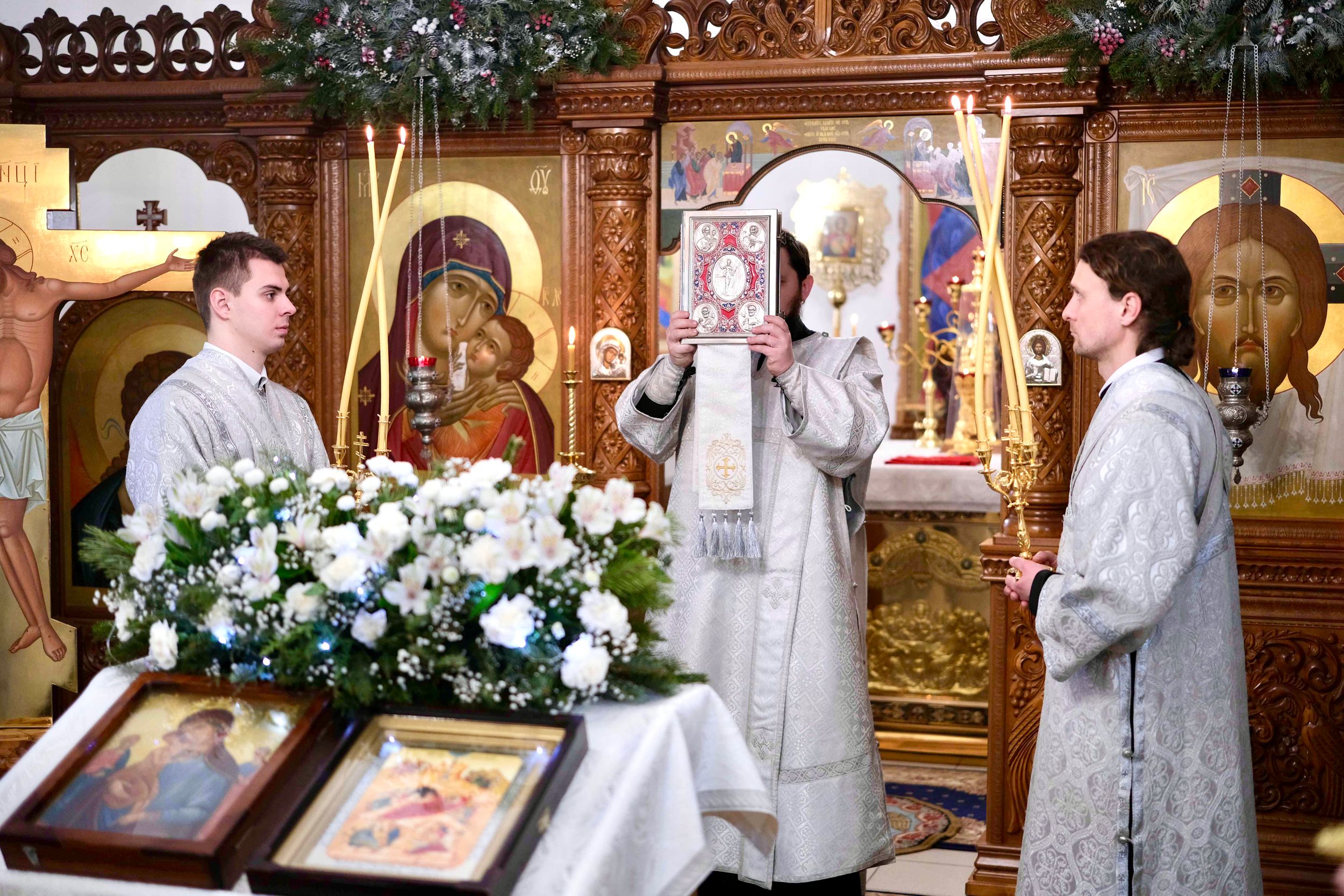 Вечером 8 января, в попразднство Рождества Христова, архиепископ Брестский и Кобринский Иоанн совершил вечерню с чтением акафиста Пресвятой Богородице в честь иконы Ее «Три радости» в Спасском женском монастыре в г. Кобрине.