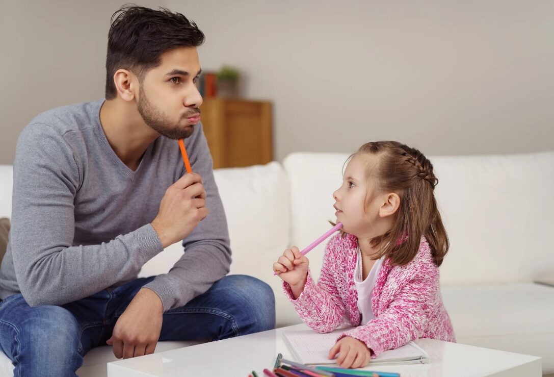 Отец может стать неоценимым помощником в развитии мышления ребенка. Отмечено, что отцы могут научить ребенка говорить быстрее и правильнее, чем мамы и бабушки: связано это с тем, что папы, в отличие от мам, не коверкают слова и не «сюсюкают», стараясь «подстроиться» под карапуза. Как правило, мужчины лучше обучают детей манипуляциям с предметами (особенно с конструкторами, головоломками); взаимодействие с отцом расширяет кругозор малышей, способствует формированию у них более широкого поля интересов.