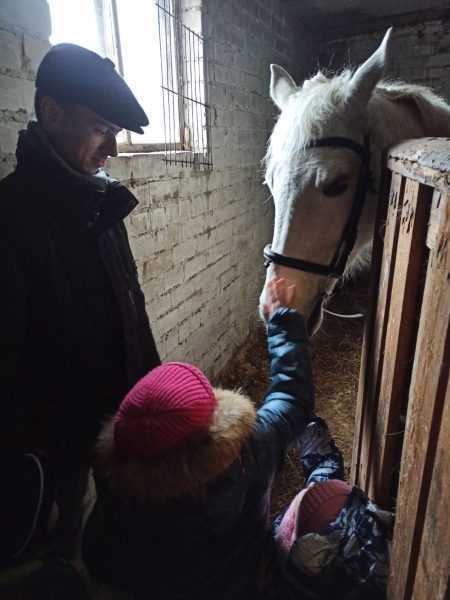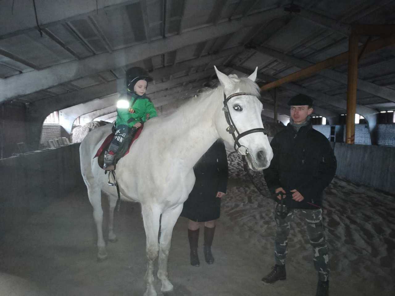 — Нас с радостью встретил хозяин конного клуба «Конный Континент» Владислав, – отмечает участник инициативной группы Юрий Куришко. – Он познакомил ребят с лошадью Легация, рассказал про ее родословную и успехи в спортивной карьере. В завершении встречи Легация покатала ребят, которые в благодарность угостили ее сахарком.