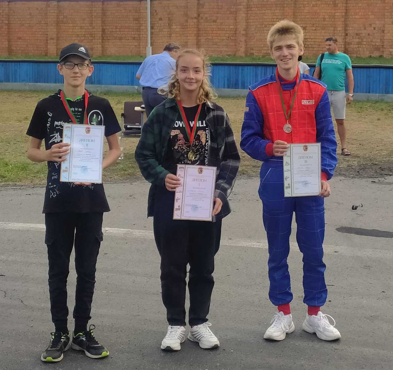 Лилия Игнатюк (крайняя справа) на спортивных соревнованиях на Кубок Брестской области по картингу и Первенстве области памяти А.М. Козика