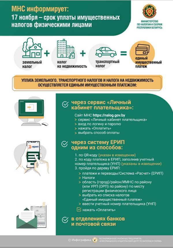 МНС информирует: 17 ноября — срок уплаты имущественных налогов физическими лицами
