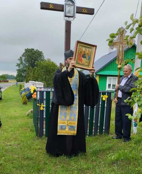 24 июня настоятель храма святителя Николая Чудотворца в г. Кобрине протоиерей Анатолий Антипорович, в присутствии жителей деревни Андроново, совершил Чин освящения новосооружённого Поклонного Креста, установленного на выезде из деревни. Священник обратился к присутствующим со словами назидания и добрых пожеланий.