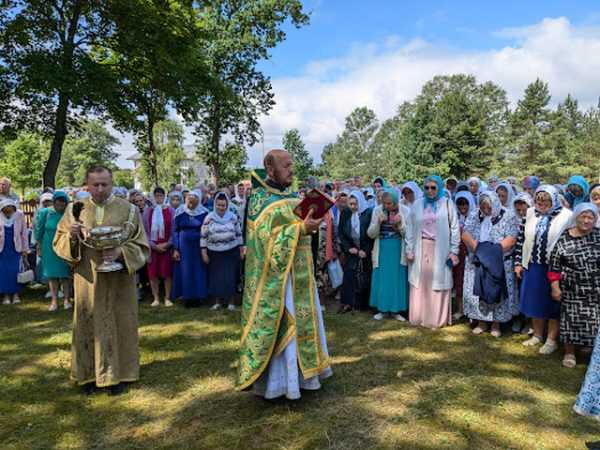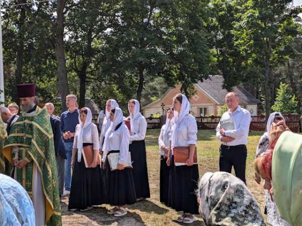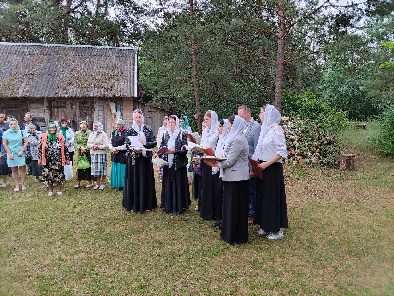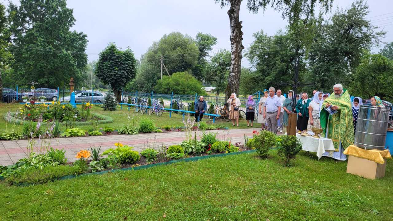 Началось Богослужение с водосвятного молебна у колодца на территории храма. Молебен совершил протоиерей Сергий Кислюк. Многочисленные паломники, прихожане и хор Петропавловского храма г. Кобрина участвовали в чине освящения воды и молитве.