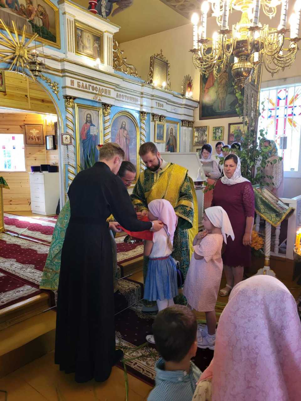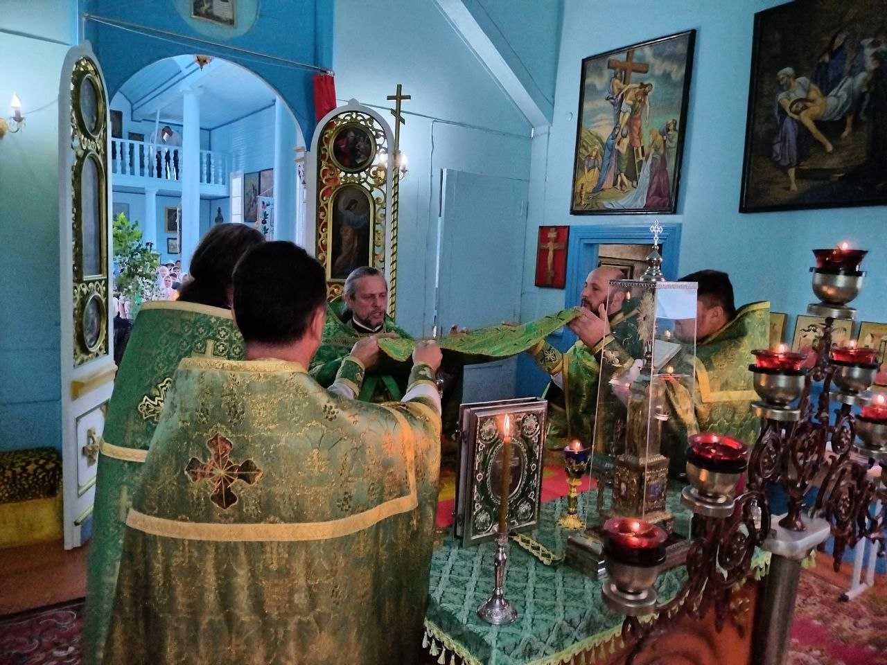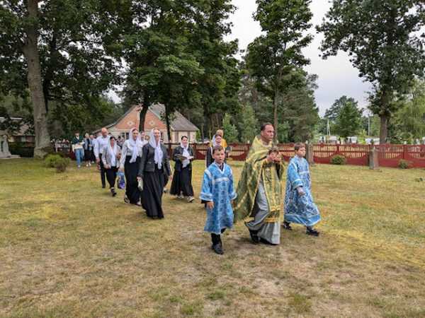 По окончании молебна Крестным ходом все участники Богослужения прошли в храм, где началось чтение Часов и Божественная Литургия. Богослужебные песнопения исполнял хор Петропавловского храма г. Кобрина.