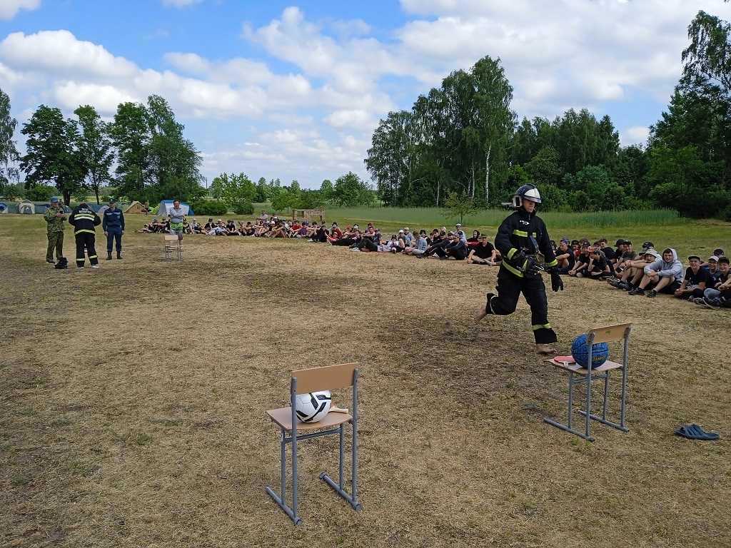 В Кобринском районе продолжаются профилактические мероприятия, проводимые спасателями в детских оздоровительных лагерях в рамках республиканской акции «Каникулы без дыма и огня». Очередная встреча работников районного отдела по чрезвычайным ситуациям с ребятами состоялась в профильном палаточном оздоровительном лагере функционирующем на базе ГУО «Болотская базовая школа».