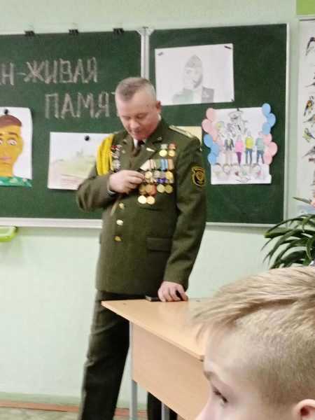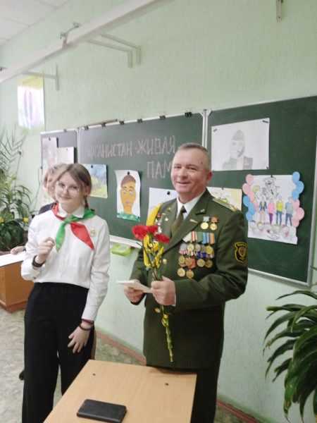 Выступая перед учащимися, Александр Николаевич рассказал, как будучи еще девятиклассником впервые услышал о войне в Афганистане и никак не предполагал, что ему дважды придётся на ней побывать. Рассказал о службе, о воинском долге и верности Отечеству, о потерях друзей на войне, о самоотверженности наших воинов в боевой обстановке, повседневном быте в довольно специфических климатических условиях для наших людей.