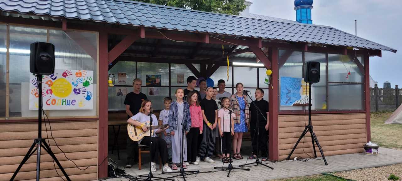 После подвижных игр на свежем воздухе было приятно решение отдохнуть. Теплым летним вечером звучали песни, ребята играли на гитаре и аккордеоне. Не отставали и воспитатели, и священники, отец Артемий и отец Виктор. На творческом вечере все были и зрителями, и исполнителями.