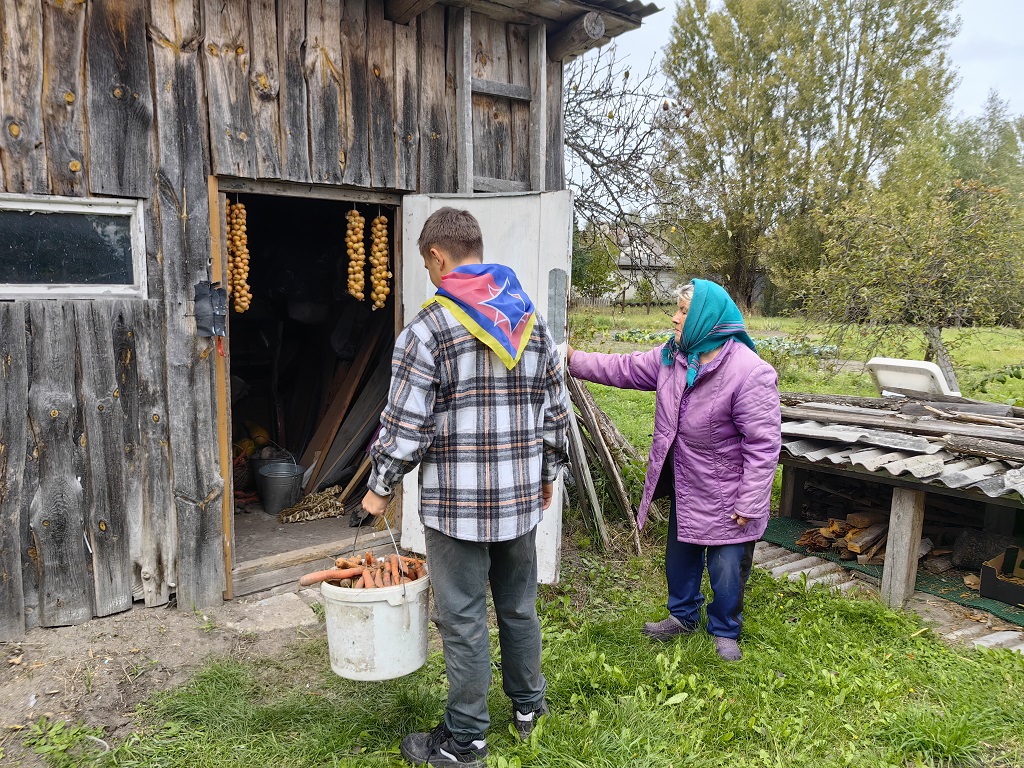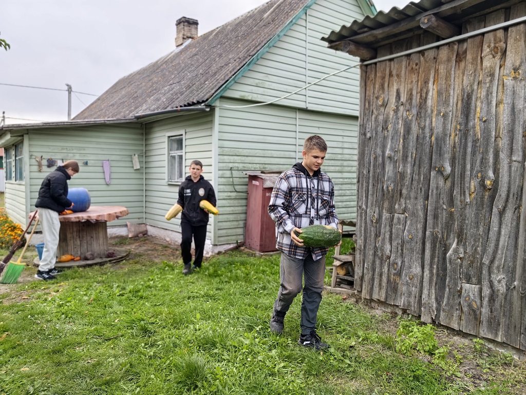Сегодня инспектор СНиП Алина Лукина и активисты БМООСП из учреждения образования «Залесская средняя школа» оказали шефскую помощь одиноко проживающей жительнице д. Залесье Анастасии Степановне Лемачко. Ребята помогли Анастасии Степановне в уборке сухой растительности на приусадебном участке. Совместно убрали огород и приусадебный участок. Работник службы спасения проверила готовность печного отопления к зимнему сезону, а также работу автономных пожарных извещателей.