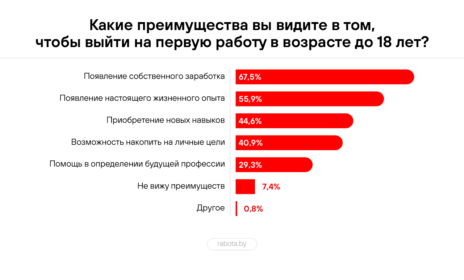 Сайт по поиску работы и подбору персонала rabota.by провел опрос среди пользователей своего сервиса, чтобы понять, как белорусы относятся к первому трудовому опыту до 18 лет. В опросе приняли участие 624 человека, часть из… Читать далее
